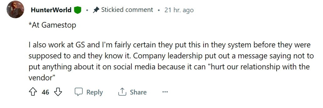 近日国外Reddit论坛用户hooty_hoooo分享截图,显示GameStop后台已添加《星空》预购信息,XSX实体版价格为69.99美元。有人询问这张截图的真实性,GameStop工作人员“HunterWorld”证实了该消息的真实性。
