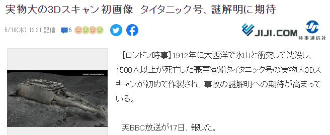 ·据传,当年泰坦尼克号在1912年首航,在大西洋撞上了冰山,沉到了3800米深的海底直到今天,由于探索难度过大,至今都没有一个完整的3D全景扫描图像。