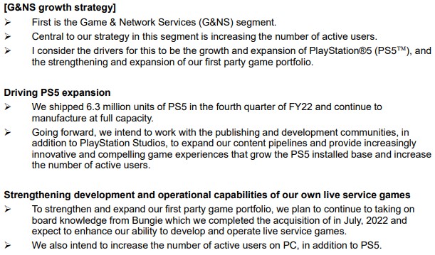 在公司2023年战略会上,索尼提到,除了增加PlayStation上的活跃玩家基数,公司还希望通过在线服务游戏来增加PC上的活跃玩家。