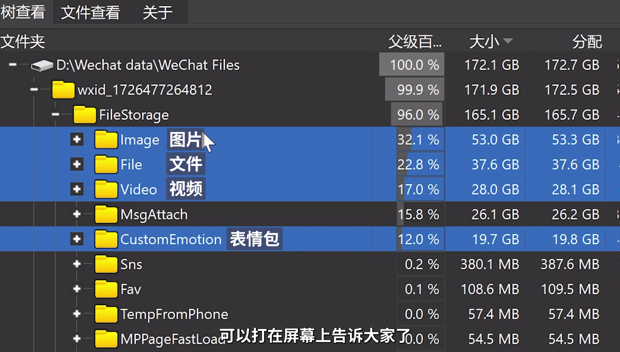 除了dupeguru之外,小新还提到了一个软件 Wiztree,这是一个可以直观显示磁盘及文件占用容量的软件,也非常好用,是小编也一直在用的神器,可以查看清理之后微信还占用多少空间。