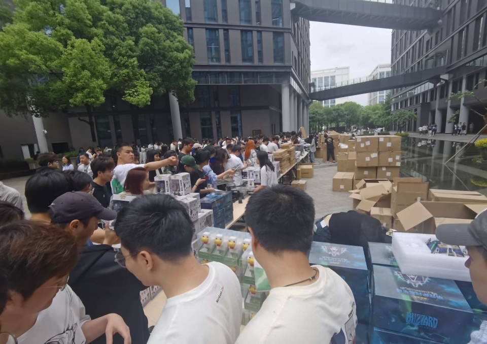 近日,有认证为网易员工的用户在社交平台发帖称,网易杭州公司园区内正以1.5折甩卖暴雪遗留周边,并晒出排队火爆的现场照片,引发关注。该动态评论区中,有网易员工称广州园区也有暴雪周边甩卖活动。