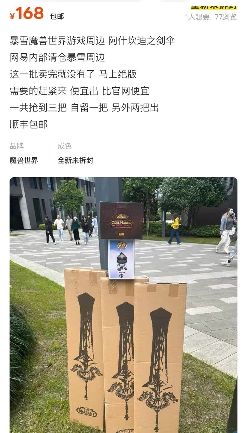这已经不是网易第一次甩卖暴雪“遗产”。就在十天前,也有网友晒出暴雪周边被甩卖的活动海报,宣传语显示“他们分手了,我在疯狂清仓”,一位网易员工向九派财经记者证实,此为网易园区内活动。