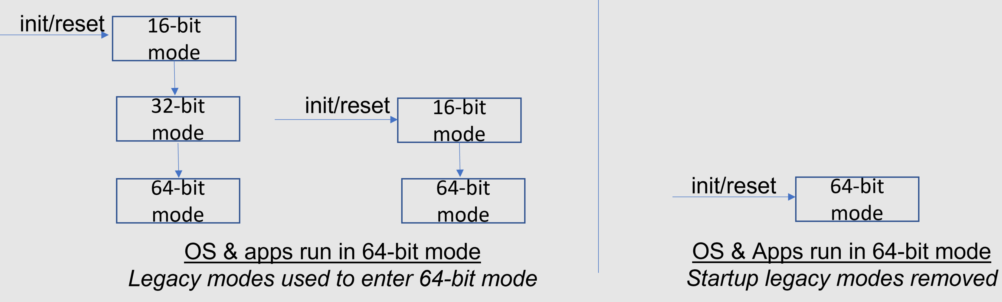 只支持纯血64位的好处不用说,不论硬件架构还是软件开发都会简化,但是这个过程中也要删减一些功能,包括16位寻址、过时的IO端口等等,而且还需要OS系统及软件的配合。