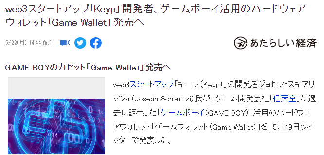 当年曾经风靡一时的任天堂GB掌机如今或许有了新的发力点,知名Web3初创公司Keyp日前宣布,将推出具有游戏性的加密货币冷钱包,基于GB掌机打造,玩家将利用GB卡带实现机密货币的存储和交易对接。