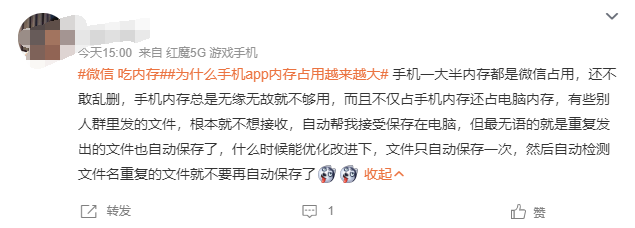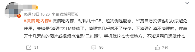 这次微信因为占用存储过大而上热搜,也是大家积攒了良久的怒火,不吐不快。