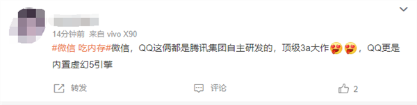 “微信、QQ这俩都是腾讯自主研发的,顶级3A大作,QQ更是内置虚幻5引擎。”