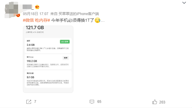 当然,也有博主为大家科普:内存是内存,机身存储是机身存储(相当于硬盘),微信占的是机身存储。
