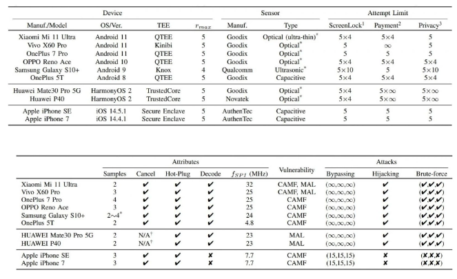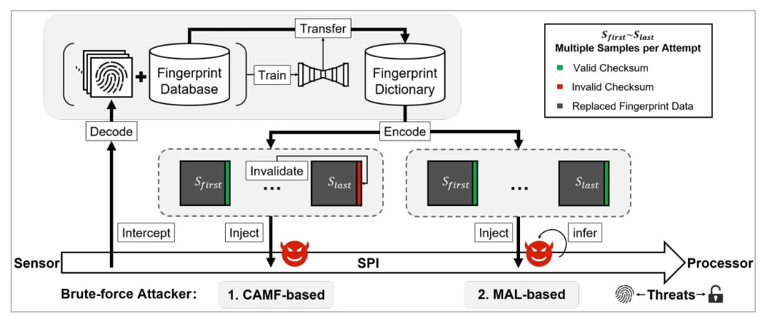 根据相关论文的信息,研究人员通过 Cancel-After-Match-Fail(CAMF)和Match-After-Lock(MAL)两个零日漏洞,以及指纹传感器的串行外设接口没有得到充分保护,从而破解了手机指纹。