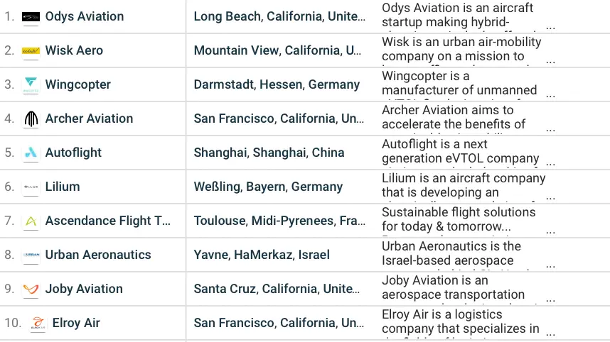 eVTOL startups