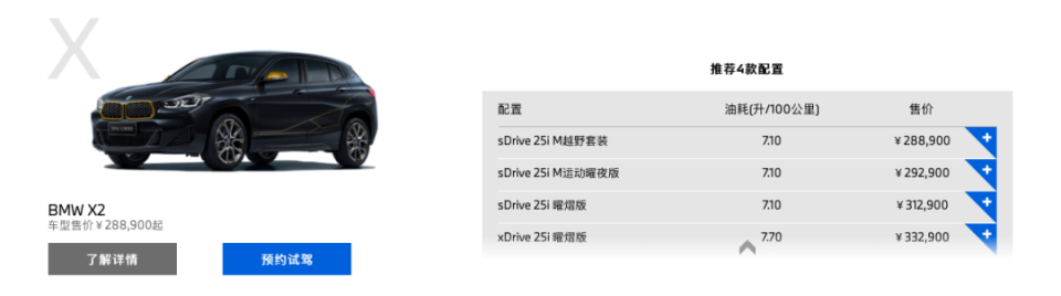 目前宝马X2共有4款车型在售,售价区间28.89万—33.29万元,上述销售表示,X2的销量虽然不太好,但作为紧凑型SUV,一些女性客户还是比较喜欢。