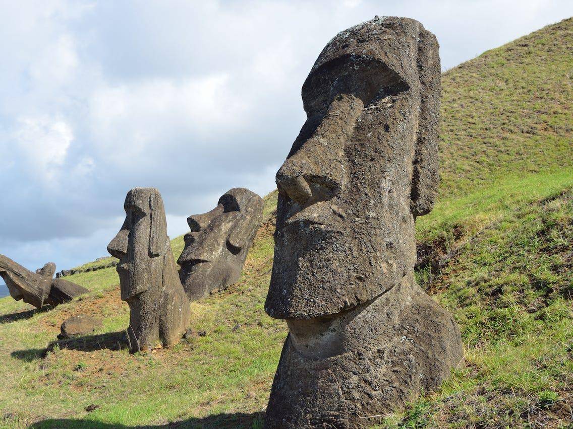 这些巨大的石像被称作摩艾,所有的摩艾都遵循躯干和头部的比例3:5,“大头”这点和其它地区的波利尼西亚人的雕刻基本保持一致。