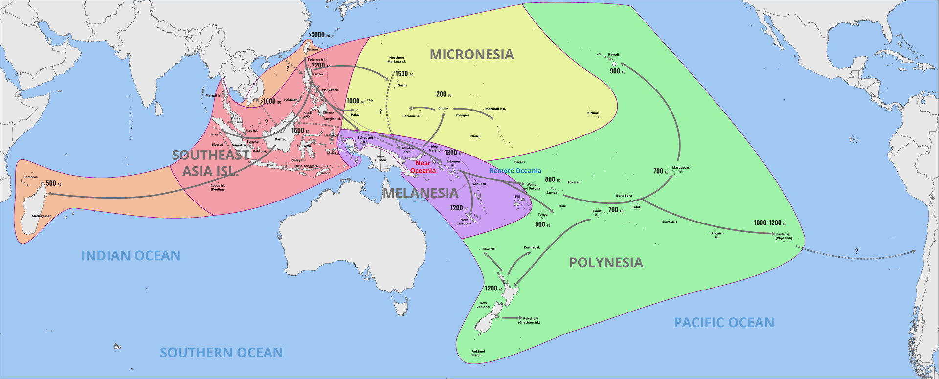 波利尼西亚人大约在3000年前或者更早从东南亚出发,开启了人类太平洋的征途,大约在公元700-800年之间,他们的一个分支坐着独木舟到达了复活节岛。
