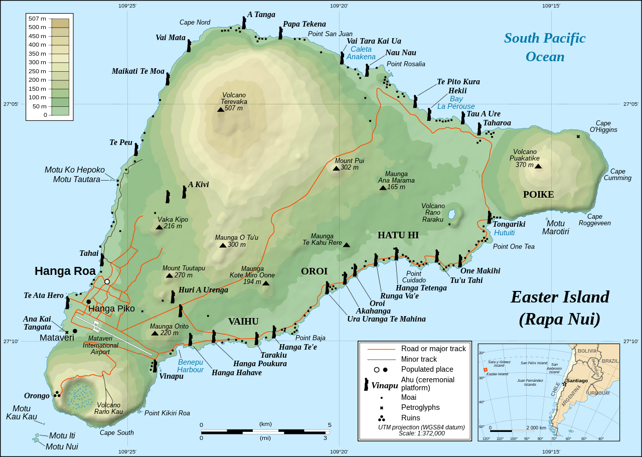 复活节岛是世界上最偏远且有人居住的岛屿之一,与之最近的大陆点位于智利中部康塞普西翁附近,差不多有3512公里,而与之最近的有人居住的岛屿也将近2000公里,这让岛屿长期保持孤立。