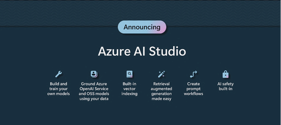 首先,微软推出了全新的Azure AI Studio,开发人员将可以在AI的辅助下基于Azure个性化地去构建、训练、评估和部署最新的下一代模型。