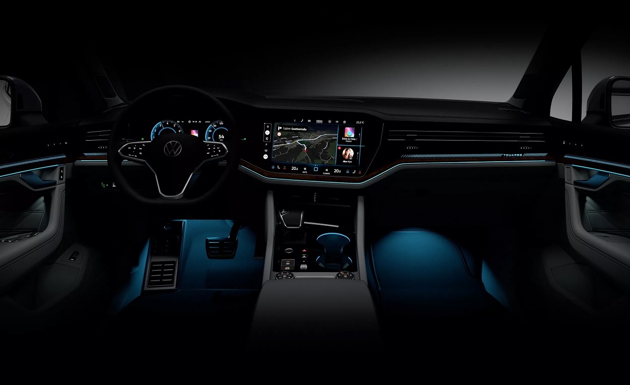 除新式大灯与改款前包围外,2023款途锐在外观方面最显著的变化是引入贯穿式尾灯与发光大众徽标。