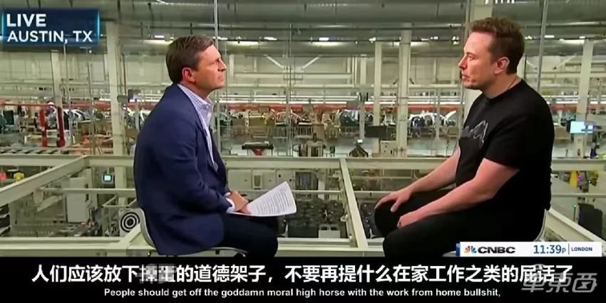 马斯克:是的,这是一个生产力问题,但也是一个道德问题。人们应该放下道德架子,不要再提什么在家工作之类的屁话了。