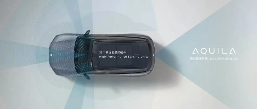 标配的Aquila蔚来超感系统,拥有包括激光雷达、高清摄像头、高精定位单元等在内的33个传感器,其中包括了1550nm的车顶激光雷达,车身7个800万像素摄像头,全系标配四颗NVIDIA Orin X 芯片,算力达到1016TOPS。