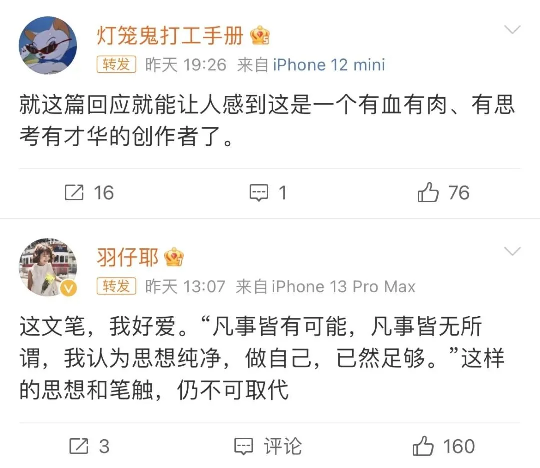 看似是无奈之下的洒脱,但其思想和笔触,却恰恰成为网友心中人类仍不可取代的证明。“孙燕姿回应AI孙燕姿”、“孙燕姿文笔”的话题也顺势登上微博热搜。