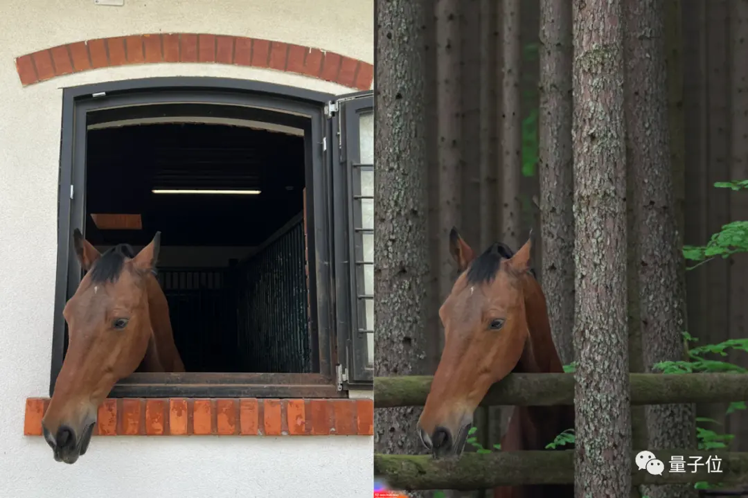 再来放大看一眼效果。除了马嘴有一点P糊了,没啥大毛病。AI还自动补全了马身子的部分,看上去也挺自然。