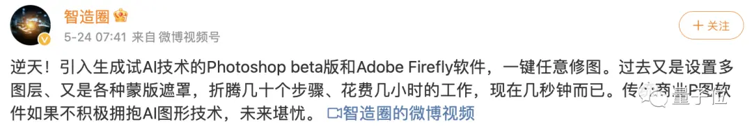好家伙,Adobe这回是下定决心要用AI革自己的命了!率先动刀的,就是大家伙儿最为熟悉的修图软件PS(Photoshop)。语言有些苍白,咱们直接上效果——