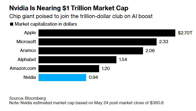 英伟达(NVDA.US)在公布了令人震惊的强劲业绩前景后,英伟达股票市值在周四美股盘初交易中飙升至接近1万亿美元市值大关。英伟达的首席执行官黄仁勋强调,该公司今年将迎来“创纪录的一年”。