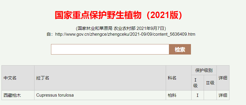 中国珍稀濒危植物信息系统显示,西藏柏木为国家一级保护植物。