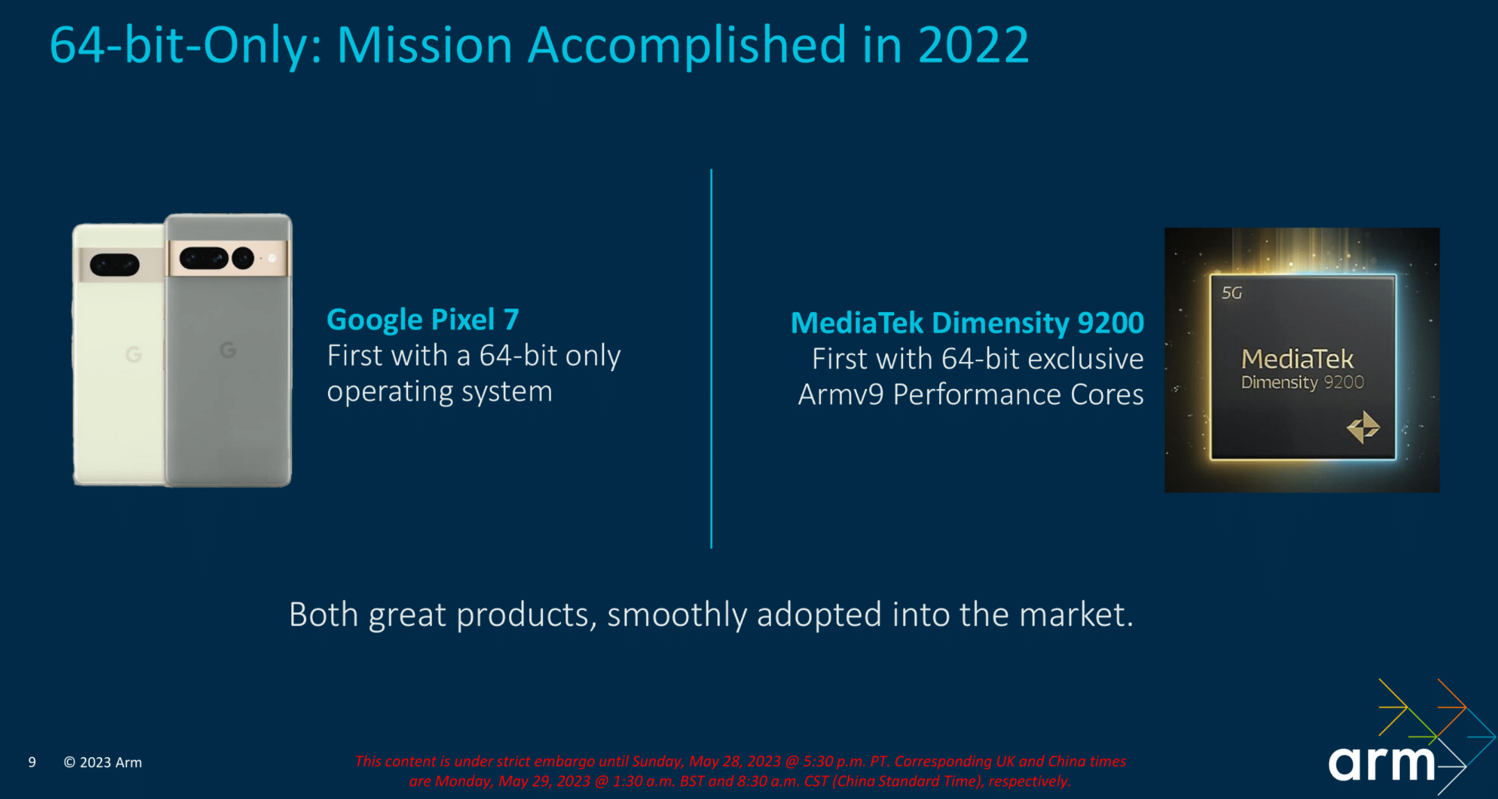 这次新架构的另一个重大变化就是新架构只有AArch64位,AArch32已经被放弃了,意味着此后的Arm将转向纯64位架构,这一天也期盼已久的。