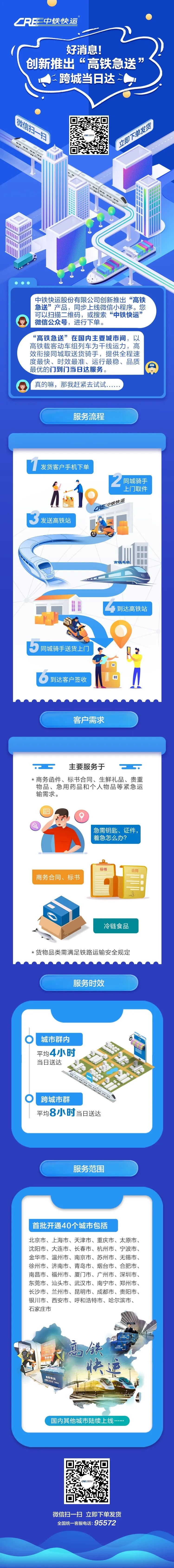 国铁集团旗下中铁快运宣布推出“高铁急送”产品,目前已经上线微信小程序。据介绍,“高铁急送”服务主要面向有紧急运输需求客户,比如商务函件、标书合同、生鲜礼品、贵重物品、急用药品和个人物品等紧急运输。