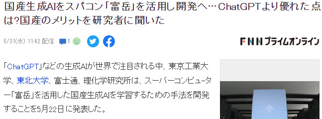 ·提起日本超算“富岳”,多次在世界超级计算机运算排行榜中占据前位,其运算能力绝对不容小觑,東京工業大学、東北大学、富士通、理化学研究所等科研机构联合计划就是直接活用超算“富岳”开发新AI,以对抗ChatGPT。