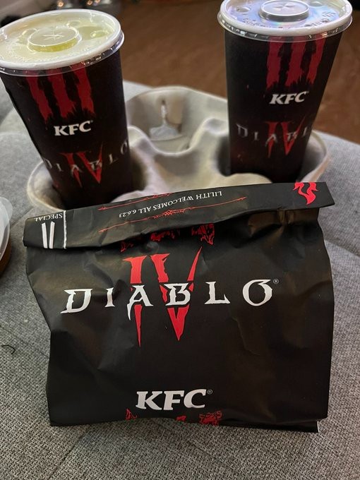 有美国网友透露,该联动活动已开始。5月29日肯德基官网添加新页面,宣布与《暗黑破坏神4》合作,很多网友在肯德基餐厅里,看到肯德基开始使用《暗黑4》主题包装纸和杯子。