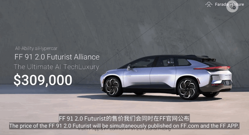 发布会上,贾跃亭也公布了FF 91 2.0 Futurist Alliance的售价,30.9万美元(约合人民币219.5万元),全球限量300台,Futurist售价为24.9万美元(约合人民币176.9万元)。贾跃亭希望能把FF打造成为智能电车时代下的“法拉利+迈巴赫”。