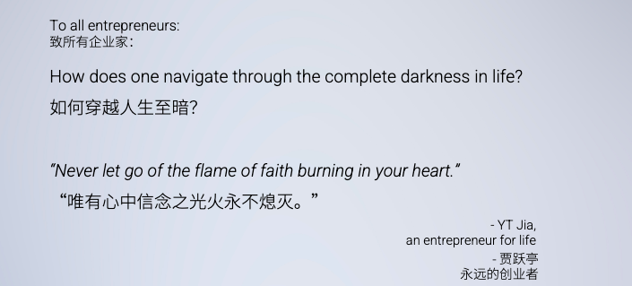 贾跃亭的回答是,要让信仰的火焰永不熄灭。