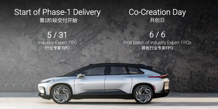 第一阶段是“行业专家未来主义产品官(FPO)共创交付”,行业专家FPO将全额支付FF91车辆的费用,以预订车辆并接受车辆的使用培训。