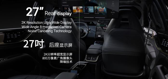 比如后排27英寸的显示屏、800万像素广角摄像头和降噪麦克风,可成为乘客举行线上线下会议的办公室。