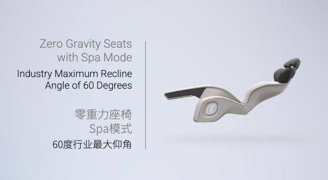 FF91还配备了零重力座椅,这项科技起源于NASA,处于失重状态时,人会得到最舒服的状态,这时人体的骨架、关节、神经系统受到的压力和束缚最小,FF把这一原理应用到FF91车上,同时还可以一键开启Spa模式帮助乘客放松。