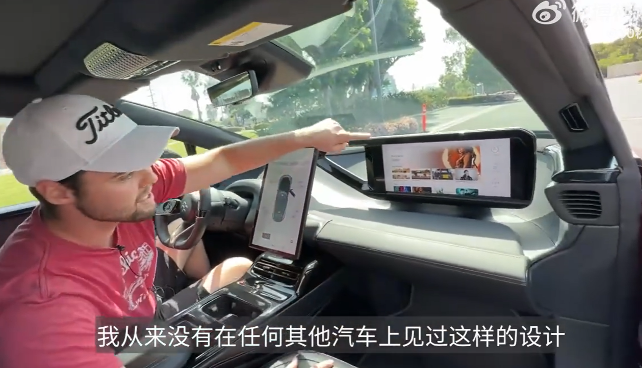 在介绍内饰时,博主表示特斯拉的内部设计是极简风,但过于简单了,而FF 91则完全颠覆了特斯拉的设计,配备有类似F1的多功能扁平化方向盘、全液晶仪表盘、大尺寸中控屏还副驾驶娱乐屏,他还称赞了FF 91拥有的三指左右滑动调节空调温度和上下滑动调节音量的功能。