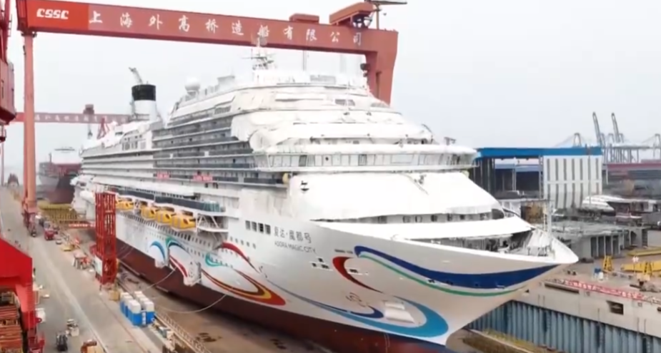 据央视新闻介绍,目前,大型邮轮是中国造船工业唯一尚未完成的高技术、高附加值船舶产品。