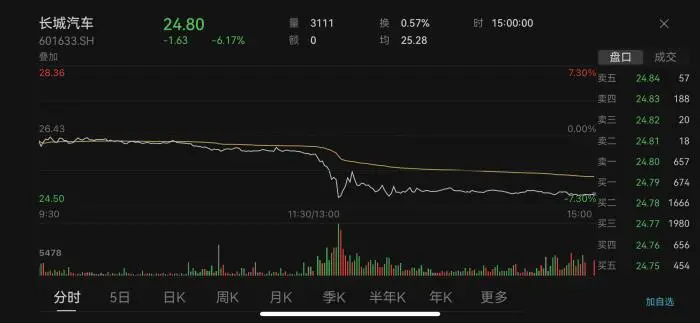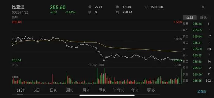 更壮观的还有这两家的股价。对线当天,比亚迪和长城的股价分别跌了2.4% 和 6.2% ,合起来一共蒸发了超过 300 亿的市值。
