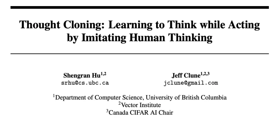 最新论文中,他们研究了智能体的“思想克隆”(TC)。
