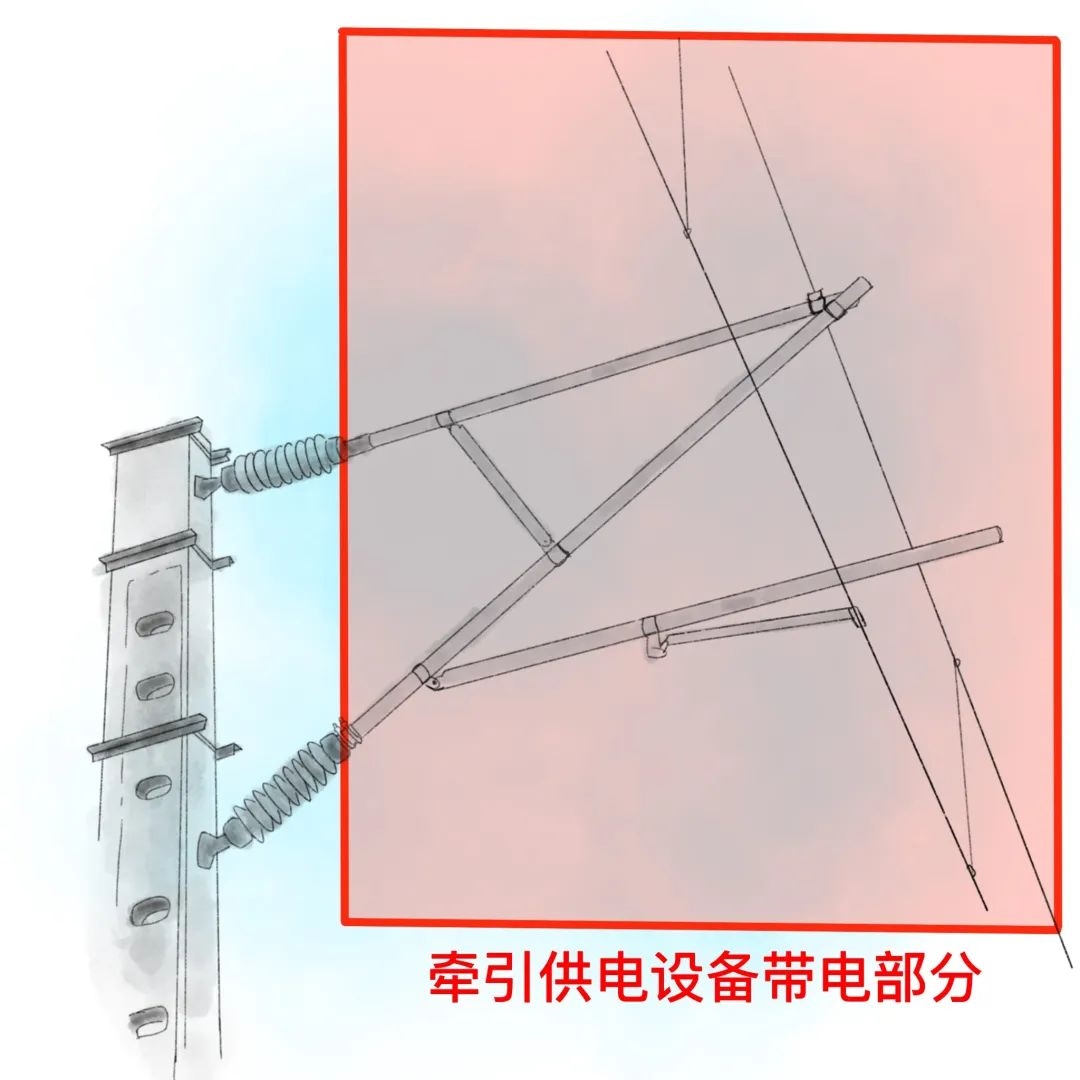 《电气化铁路有关人员电气安全规则》中规定:为保证人身安全,除牵引供电专业人员按规定作业外,任何人员及所携带的物件、作业工器具等须与牵引供电设备高压带电部分保持2米以上的距离。