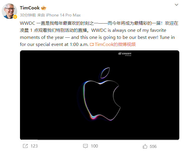 从库克的发文能看出,他对今年的WWDC、对自家新产品和新系统相当自信。