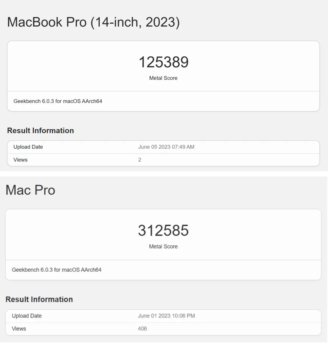 正巧近日外媒也爆出了M2 Ultra在Geekbench上的跑分图,Metal Score分数为312585,但小雷在分析后认为这张图的可信度不高。