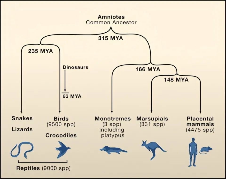鸭嘴兽和现存的其它哺乳动物的祖先在大约1.66亿年前开始分道扬镳,彼此演化,一些科学家就是以这个时间计算出人类Y染色体的“退化”速度的。
