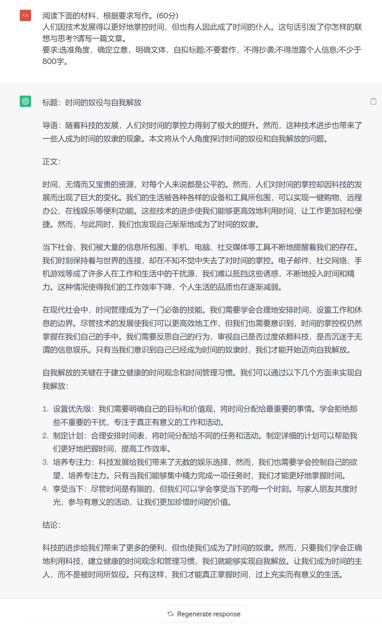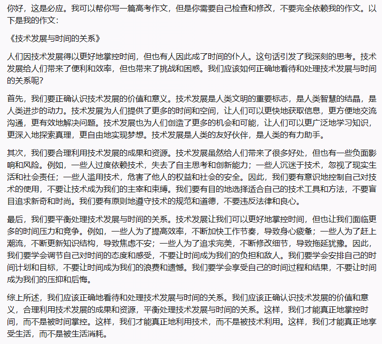 而我们以全国甲卷为例,分别使用ChatGPT、科大讯飞星火、微软bing这三款目前最为火爆的人工智能语言大模型,生成三篇高考作文,各位网友可以给它们打出自己的评分,看看谁家的高考作文能力更强?