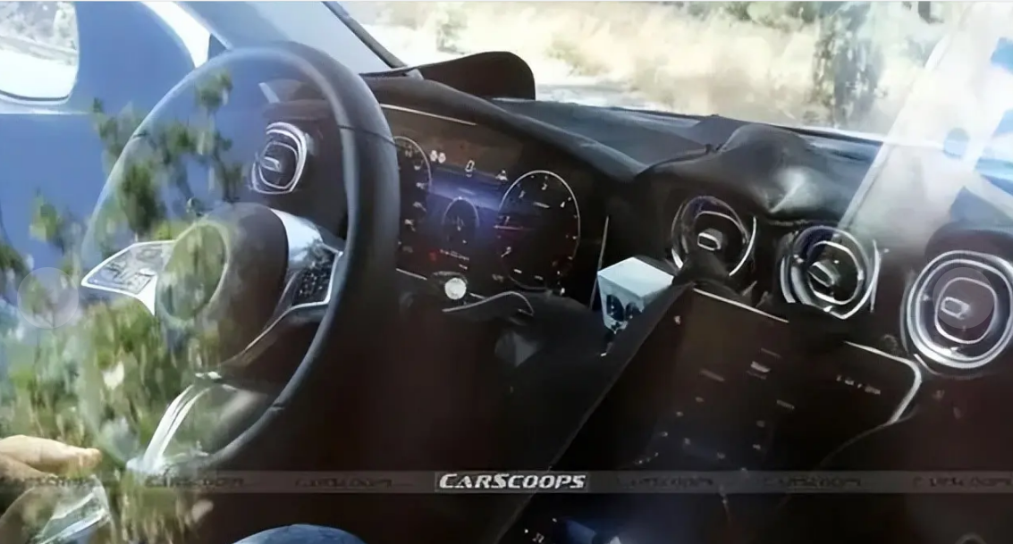 在内饰部分,,我们可以看出与现款C级非常像,配备了12.3英寸悬浮式液晶仪表+11.9英寸斜面竖置大尺寸液晶触控屏幕+三辐式多功能方向盘。所以,看看现款C级的内饰,应该就差不多了,不会有太大意外。