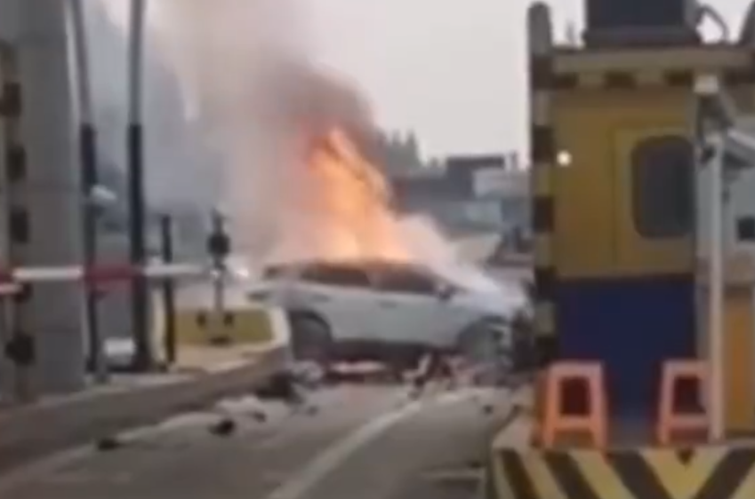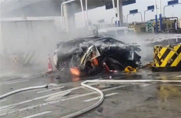 据监控视频显示,涉事车辆在进入收费站时似乎没有减速,直接撞上了收费站站台,导致车辆瞬间解体,迅速燃起大火,虽然收费站人员灭火施救,但遗憾的是,火势猛烈未能成功救助。