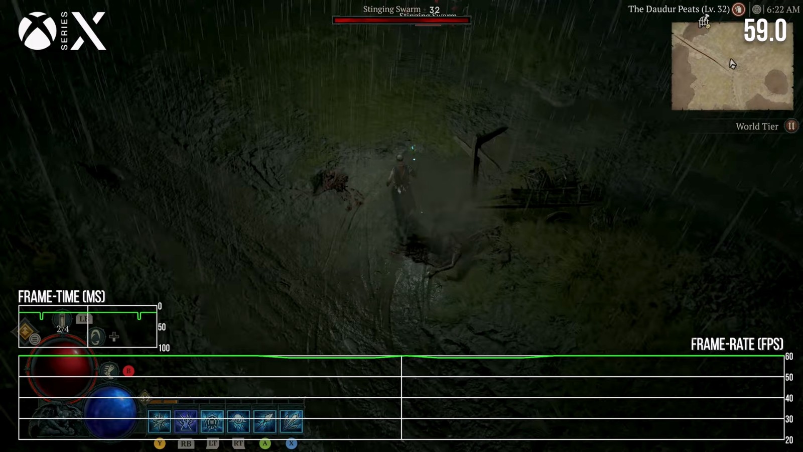 外媒Digital Foundry发布了《暗黑破坏神4》的技术分析视频。DF表示《暗黑破坏神4》在Xbox Series X和PS5上,暴雪的首要目标似乎是实现每秒60FPS的流畅帧率,而为了实现这一目标,《暗黑破坏神4》的原生分辨率低得惊人。在这两款次世代主机上,原生分辨率都在1260P左右——对于快速移动和精细细节的砍杀RPG来说,这是相当低的。