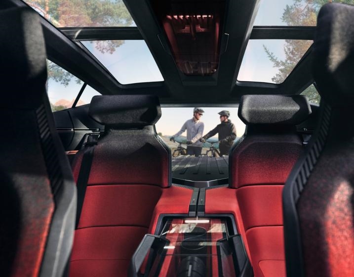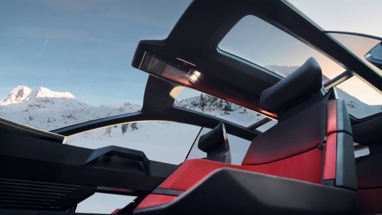 内饰部分,我们从奥迪公布的图片中可以了解到,新车采用了红+黑的座舱配色,和另外几款概念车的设计风格类似,内部均为极简范儿。车辆内部采用的是四座布局,并且车门为对开设计,中间扶手下方为储物格以及兼具冷藏、加热功能的车内酒吧。
