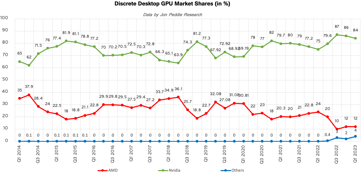 展望未来,第二季度是传统淡季,独立显卡市场还可能会进一步萎缩,要想看到好转,至少得等第三季度再说。