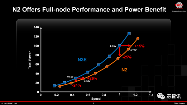 相对于3nm(N3E)制程来说,台积电2nm制程将会首次采样全新环绕闸极(GAA)晶体管架构,虽然晶体管密度仅提升了10%,但在相同功耗下,台积电2nm工艺的性能将提升10~15%;而在相同性能下,台积电2nm工艺的功耗将降低23~30%。